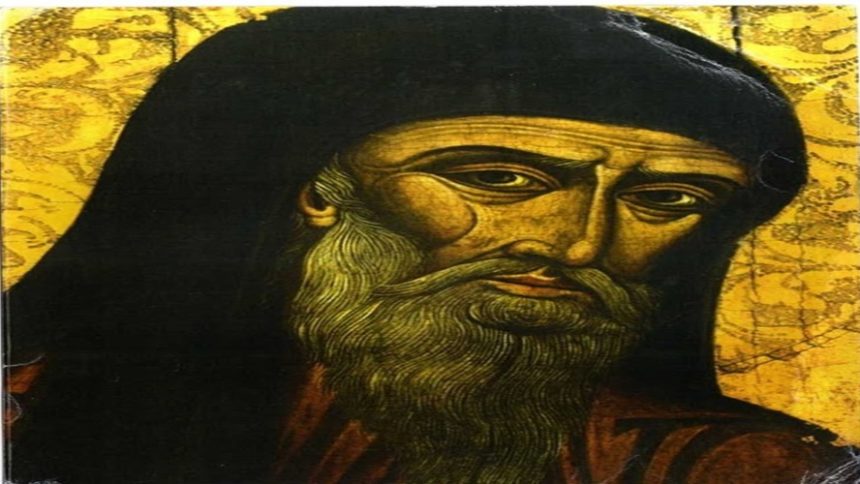 Όπου και να αναζητήσουμε τη μορφή του, αγιογραφικά και εικονικά, ο Άγιος έχει εκείνη τη στάση, που γερμένος με μια κλίση του σώματός του δεν κουράζεται να  κρατά το ειλητάριό του και να μας «συνοδεύει» με τη γλυκιά του βλέψη, λέγοντάς μας…