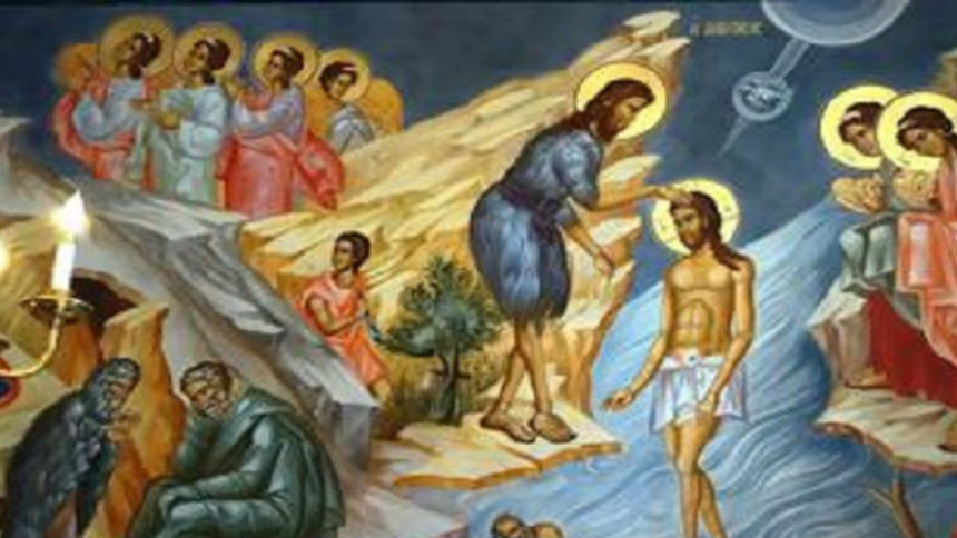 Η ιστορία της βάπτισης έχει ως εξής: Μετά από θεία εντολή ο Ιωάννης ο Πρόδρομος εγκατέλειψε την ερημική ζωή και ήλθε στον Ιορδάνη ποταμό όπου κήρυττε και βάπτιζε. Εκεί παρουσιάσθηκε κάποια ημέρα ο Ιησούς και ζήτησε να βαπτισθεί. Ο Ιωάννης, αν και το Άγιο Πνεύμα τον είχε πληροφορήσει ποιος ήταν εκείνος που του ζητούσε να βαπτισθεί, στην αρχή αρνείται να τον βαπτίσει ισχυριζόμενος ότι ο ίδιος έχει ανάγκη να βαπτισθεί από Εκείνον.