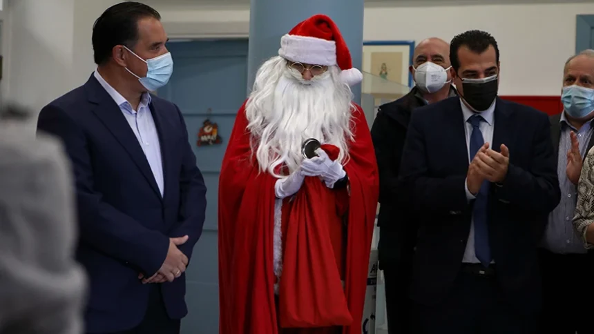 Το Νοσοκομείο Παίδων Πεντέλης επισκέφθηκαν σήμερα ο υπουργός Ανάπτυξης και Επενδύσεων, Άδωνις Γεωργιάδης και ο υπουργός Υγείας, Θάνος Πλεύρης, όπου αντάλλαξαν ευχές με το ιατρικό και νοσηλευτικό προσωπικό και μοίρασαν παιχνίδια στα παιδιά που νοσηλεύονται κατόπιν δωρεάς της αλυσίδας παιχνιδιών «Μουστάκας».