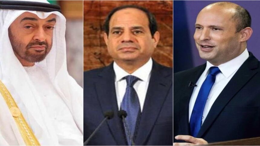 Στο αιγυπτιακό θέρετρο ο πρόεδρος Αλ Σίσι υποδέχθηκε τον ισραηλινό πρωθυπουργό Ν. Μπένετ και τον ηγέτη των ΗΑΕ Μοχάμαντ μπιν Ζαγιεντ (ΜΒΖ) για συνομιλίες που, σύμφωνα με τις πρώτες πληροφορίες, αφορούσαν τόσο την κρίση στην Ουκρανία όσο και τις περιφερειακές εξελίξεις, με έμφαση στο Ιράν και στη Συρία.