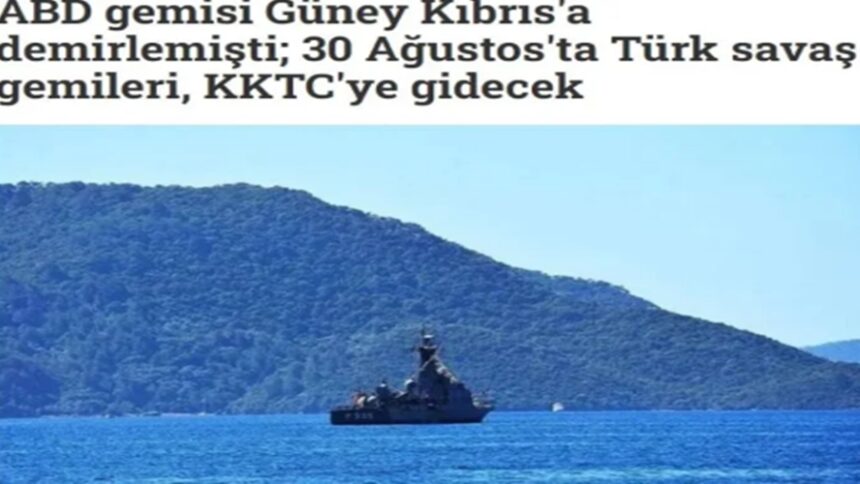 Τουρκικό δημοσίευμα αναφέρει ότι το USS Roosevelt του Πολεμικού Ναυτικού των ΗΠΑ πήγε στις ακτές της Κυπριακής Δημοκρατίας στις 25 Αυγούστου, καθώς τουρκικά. πολεμικά πλοία θα επισκεφθούν την Κατεχόμενη Βόρεια Κύπρο στις 30 Αυγούστου Ημέρα της Νίκης και Ημέρα Τουρκικών Ενόπλων Δυνάμεων.