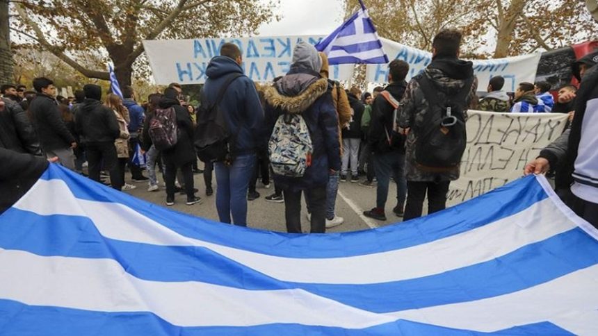 Foto: Μαθητές από σχολεία της Θεσσαλονίκης διαμαρτύρονται για τη Συμφωνία των Πρεσπών (φωτ.: ΑΠΕ-ΜΠΕ)