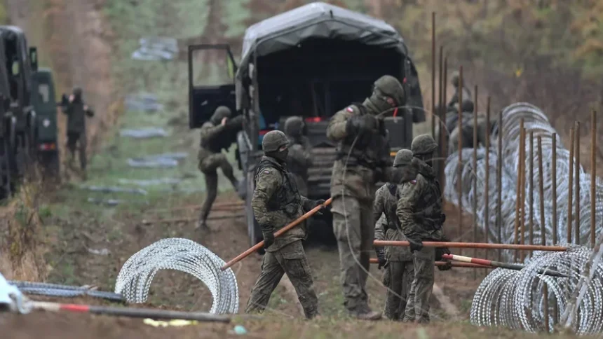 Η Πολωνία έχει χτίσει έναν φράκτη στα σύνορα με τη Λευκορωσία, εξοπλισμένο με ηλεκτρονική προστασία.
