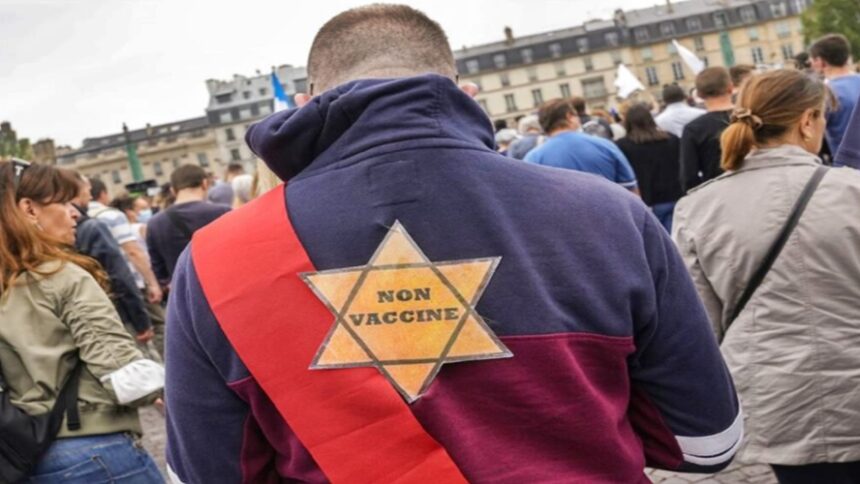 Σύμφωνα με τον Γάλλο φιλόσοφο Αντρέ Ταγκίεφ, «στο στρατόπεδο των αντιεμβολιαστών, μπορεί κανείς να διακρίνει στοιχεία των δυο παραδοσιακών αντιεβραϊκών μύθων: Πρώτον, τη θεωρία συνωμοσίας που απεικονίζει τους Εβραίους ως κυρίαρχους του κόσμου που επιβάλλουν μια «εμβολιαστική δικτατορία» και, δεύτερον, το μύθο του εγκληματικού Εβραίου που χρησιμοποιεί το εμβόλιο ως φονικό όπλο ή επιδιώκει να πραγματώσει μια γενοκτονία μέσα από τους μαζικούς εμβολιασμούς».