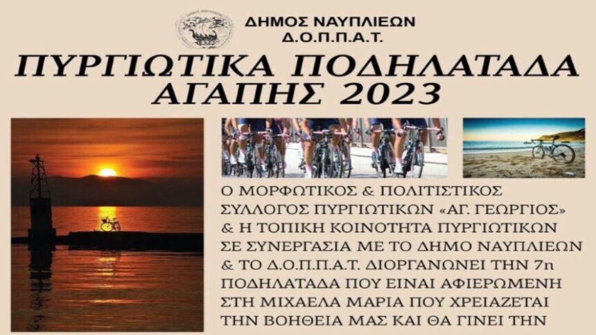 Ποδηλατάδα Αγάπης 2023 στα Πυργιώτικα, την Κυριακή 3 Σεπτεμβρίου 2023 και ώρα 17:30 έως 20:00.