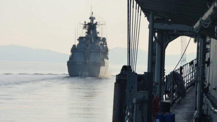 Το Υπουργείο Εξωτερικών είπε ότι η φρεγάτα εντόπισε το υποβρύχιο χρησιμοποιώντας ρυμουλκούμενο σόναρ – έναν μακρύ σωλήνα εξοπλισμένο με ευαίσθητα υδρόφωνα για να ακούει κάτω από το νερό.