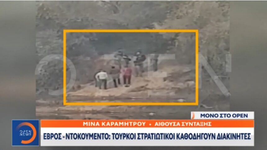 Στο βίντεο που παρουσιάστηκε στο δελτίο ειδήσεων του Οpen ομάδα τουλάχιστον 50 μεταναστών φαίνεται να κατεβαίνουν από φορτηγό της στρατοφυλακής στα ελληνοτουρκικά σύνορα.