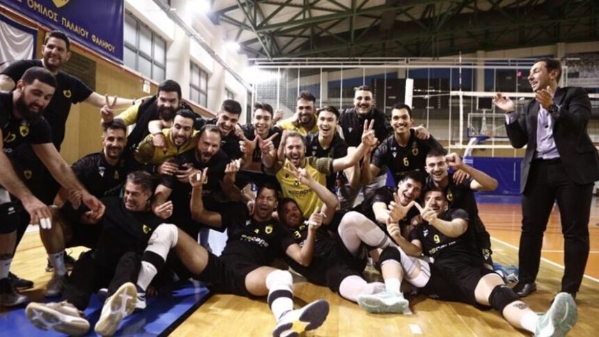Η Ένωση επικράτησε στο κλειστό του Παλαιού Φαλήρου «Σοφία Μπεφόν» με 3-1 σετ του Φλοίσβου, κατάκτησε την πρώτη θέση στην κανονική διάρκεια του πρωταθλήματος, πανηγυρίζοντας την απευθείας άνοδο στη Volley League.