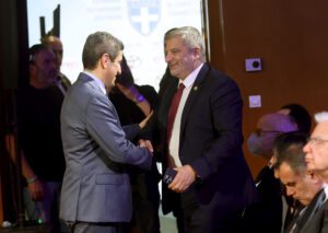 Τον κ. Πατούλη υποδέχθηκε στην τελετή ο Πρόεδρος της ΕΟΕ και μέλος της ΔΟΕ Σπύρος Καπράλος.