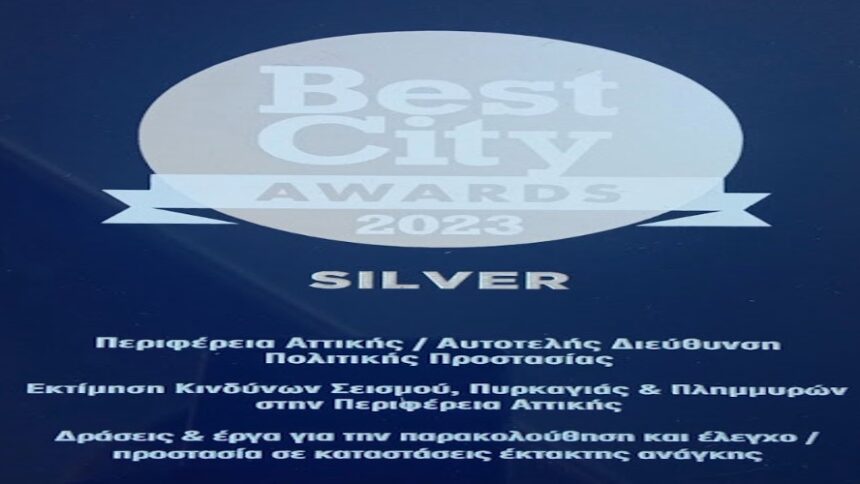 Βραβείο “Silver” στην Περιφέρεια Αττικής από τα Best City Awards 2023 για δράσεις στον τομέα της πολιτικής προστασίας.