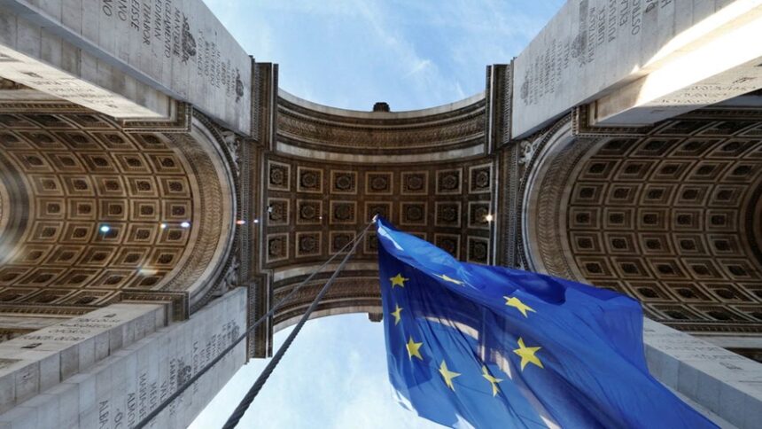 Μια μεγάλη σημαία της Ευρωπαϊκής Ένωσης που ανέβηκε στην Αψίδα του Θριάμβου στο Παρίσι την Παρασκευή ,για να σηματοδοτήσει την έναρξη της εξάμηνης γαλλικής προεδρίας του μπλοκ, αφαιρέθηκε την Κυριακή αφού προκάλεσε αντιδράσεις από ακροδεξιούς και δεξιούς ηγέτες.