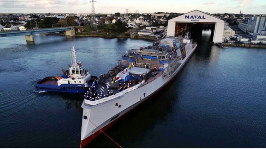 Στο νερό θα πέσει σήμερα, στην επίσημη τελετή καθέλκυσης η πρώτη φρεγάτα Belharra γαλλικής ναυπήγησης του Πολεμικού Ναυτικού με την ονομασία «Κίμων», στα ναυπηγεία της Naval Group στο Λοριάν της Βρετάνης
