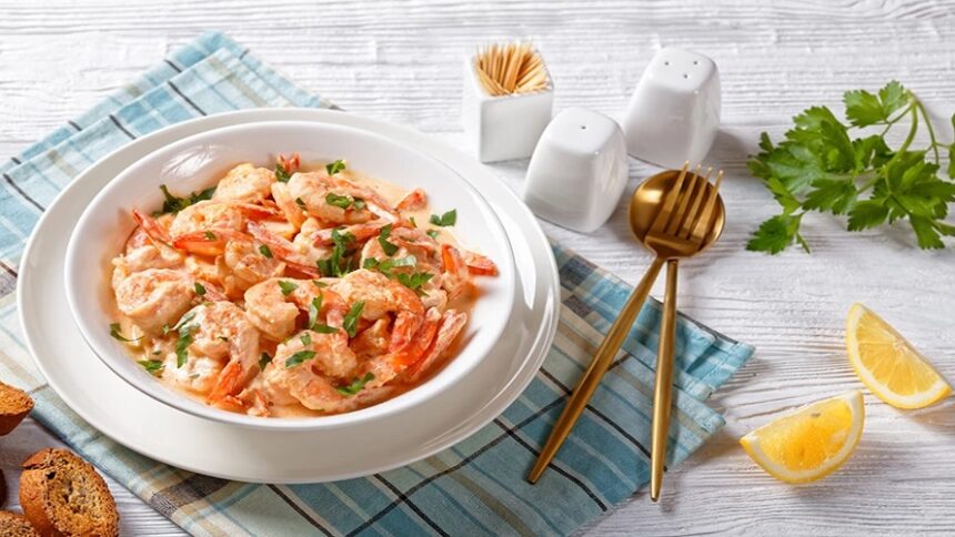 Κατεβάστε από τη φωτιά και ανακατέψτε με το χυμό λεμονιού. Προσθέστε τις γαρίδες και από πάνω ρίξτε φέτες λεμονιού, μαϊντανό, έξτρα παρμεζάνα, τριμμένο πιπέρι και αλάτι (αν χρειάζεται).