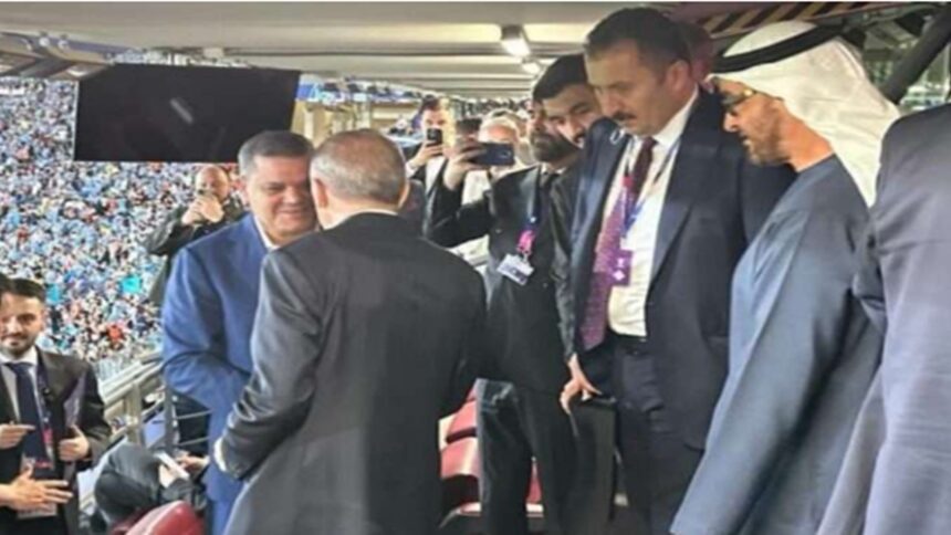 Πληρώνουμε την αδυναμία έμπρακτης στρατιωτικής στήριξης στον στρατηγό Χ.Χαφτάρ.Η τουρκική προεδρία ανέφερε σε δήλωση, το Σάββατο, ότι ο Πρόεδρος Ερντογάν συνάντησε τον Σεΐχη των ΗΑΕ, Μοχάμεντ μπιν Ζαγιέντ, το Σάββατο στο αεροδρόμιο Ατατούρκ ενώ το βράδυ όχι μόνο παρακολούθησαν από κοινού τον τελικό του Champions League αλλά συναντήθηκε και με τον πρωθυπουργό της Λιβύης Αμπντούλ Χαμίντ αλ Ντμπεϊμπά.
