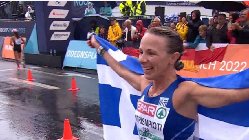 Η Ντρισμπιώτη πραγματοποίησε ακόμη μία εκπληκτική κούρσα στα 20χλμ βάδην, πετυχαίνοντας ατομικό ρεκόρ με 1:29.03, κατέλαβε την πρώτη θέση και έκανε το νταμπλ στα χρυσά μετάλλια στο Ευρωπαϊκό Πρωτάθλημα στίβου, που διεξάγεται στο Μόναχο, όπως μετέδωσε στο ertsports.gr