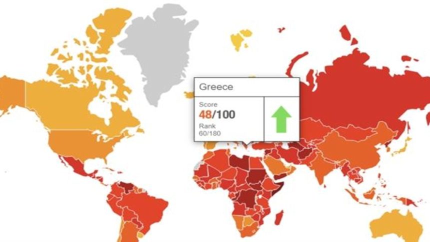 Βελτίωση κατά επτά θέσεις κατέγραψε η Ελλάδα το 2019, σε σχέση με το 2018, στον Δείκτη Αντίληψης Διαφθοράς 2019, που εκδίδει και δημοσιοποιεί η Διεθνής Διαφάνεια.