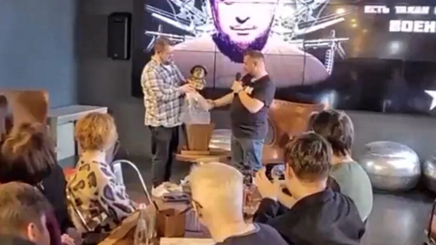 ‼️ The moment when Vladlen Tatarsky receives the "Golden Vladlen" bust