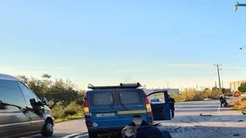 Σε αυτό το ρεύμα κινείτο βανάκι του ΟΤΕ. Ο οδηγός του δεν πρόλαβε να φρενάρει και χτύπησε από πίσω το ΙΧ που βρέθηκε στην πορεία του.