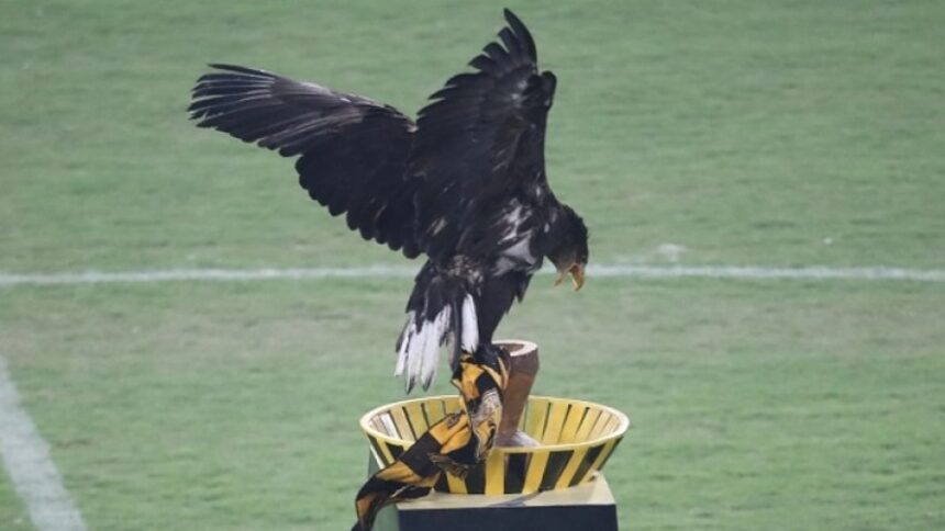 Το… ντεμπούτο του στις πτήσεις πάνω από τον ουρανό της «OPAP Arena» έκανε ο αετός της ΑΕΚ, ο Οδυσσέας.