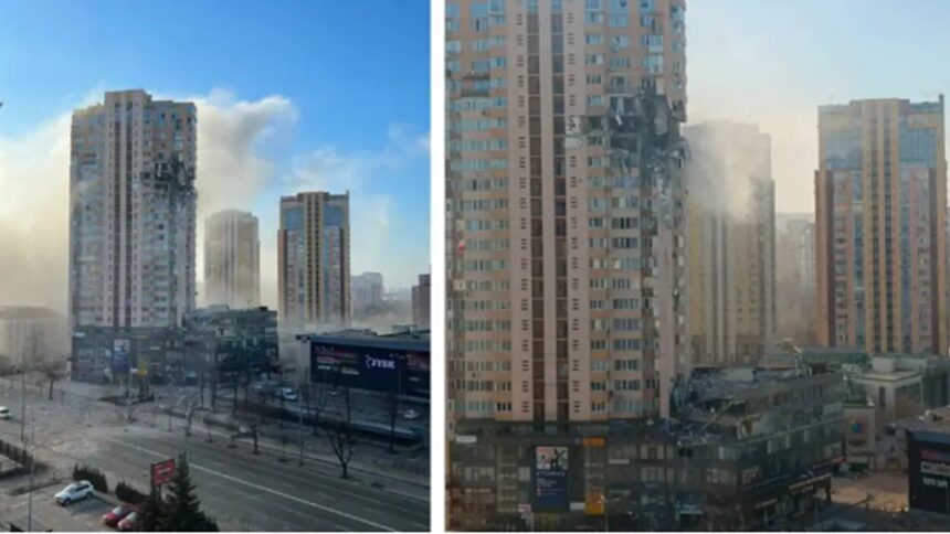 Σε νέο βίντεο που κυκλοφόρησε το πρωί του Σαββάτου, διακρίνεται πολυκατοικία που έχει «χτυπηθεί» από πύραυλο και έχει υποστεί εκτεταμένες ζημιές στο Κίεβο – Οι Ρώσοι προσπάθησαν να φέρουν τη μέγιστη ποσότητα εξοπλισμού στο Κίεβο, λέει σύμβουλος του Ζελένσκι.