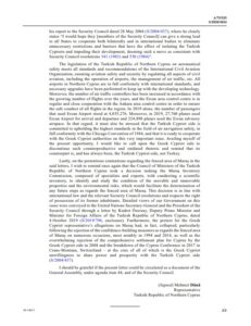 Στην επιστολή επαναλαμβάνονται οι γνωστοί ισχυρισμοί για την νόμιμη» λειτουργία του παράνομου αεροδρομίου Ερκαν στην κατεχόμενη Λευκωσία και γίνεται εκτενής αναφορά στην υπόθεση της περίκλειστης περιοχής των Βαρωσίων: