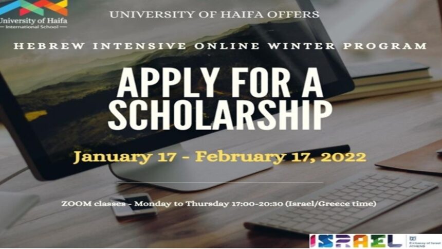 Η Πρεσβεία του Ισραήλ στην Αθήνα ανακοινώνει ότι το Πανεπιστήμιο της Χάιφας οργανώνει εντατικά μαθήματα Εβραϊκών online. Το Πανεπιστήμιο προσφέρει 10 υποτροφίες σε ξένους φοιτητές για μάθημα Ulpan απο 17 Ιανουαρίου έως 17 Φεβρουαρίου 2022.