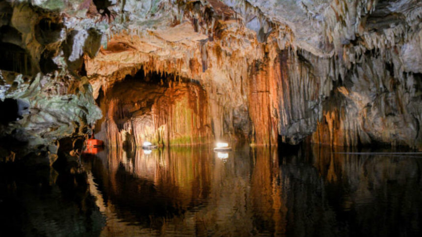 Η εμπειρία της ξενάγησης με βάρκα ανάμεσα από σταλακτίτες και σταλαγμίτες προκαλεί δέος και μένει αξέχαστη.