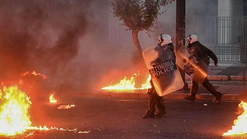 Σύμφωνα με την ΕΛΑΣ, διαδηλωτές επιτέθηκαν με μολότοφ, πέτρες και άλλα αντικείμενα σε αστυνομικές δυνάμεις που βρίσκονται στο σημείο και οι οποίες προσπαθούν να τους απωθήσουν.