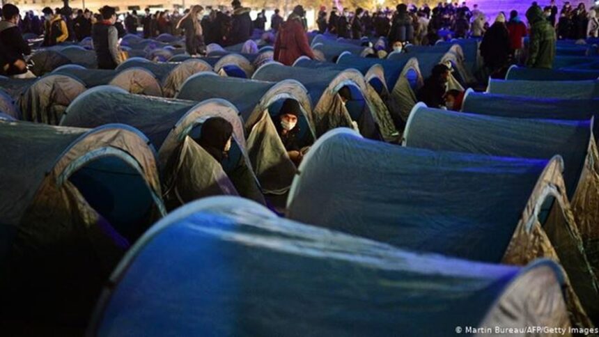 Χρειάστηκαν μόλις 2 λεπτά στις 7 η ώρα χθες το βράδυ για να στηθούν 400 μπλε σκηνές γύρω από το άγαλμα της Δημοκρατίας στην καρδιά του Παρισιού, στην πλατεία Ρεπυμπλίκ. Τις σκηνές έδωσαν οι ανθρωπιστικές οργανώσεις στους μετανάστες που είχαν ξεμείνει στους δρόμους ύστερα από την εκκένωση του στρατοπέδου μεταναστών γύρω από το Στάδιο της Γαλλίας, στο βόρειο προάστιο Saint Denis.
