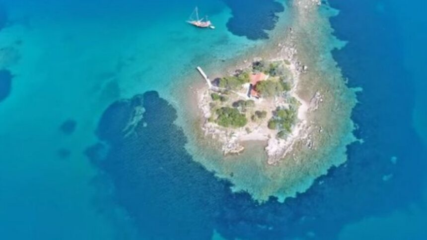 Τιρκουάζ νερά, σχήμα που μοιάζει με καρδιά και μόνο κτίσμα ένα εκκλησάκι, της Κοίμησης της Θεοτόκου (Παναγίτσα). Δεν χρειάζεται κάτι άλλο εκτός από τον έρωτα για να «πετύχει» η συνταγή.