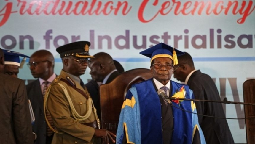 Ο 93χρονος αρχηγός του κράτους φορούσε μια μπλε τήβενο και ασορτί κάλυμμα κεφαλής κατά την τελετή αυτή που οργανώθηκε στο πανεπιστήμιο Zimbabwe Open. Την παραμονή είχε συνομιλήσει με τον αρχηγό του γενικού επιτελείου, τον στρατηγό Constantino Chiwenga, και είχε αρνηθεί να παραιτηθεί, σύμφωνα με μια πηγή που πρόσκειται στους στρατιωτικούς.