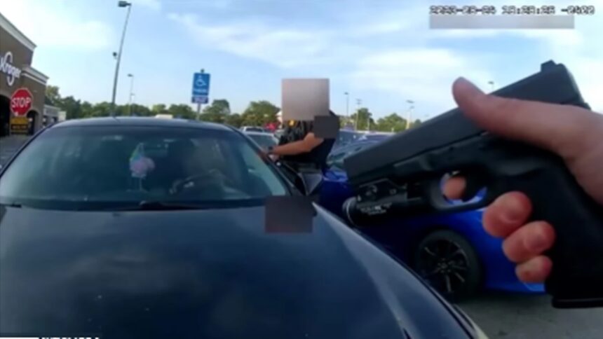 Το βίντεο δείχνει έναν αστυνομικό της κοινότητας Μπλέντον να πλησιάζει το παράθυρο της οδηγού έξω από ένα κατάστημα στο Westerville και να της λέει επανειλημμένα να βγει από το αυτοκίνητο.