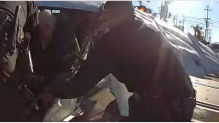 Δείτε το συγκλονιστικό βίντεο – Αστυνομικοί βγάζουν τον τραυματισμένο πιλότο έξω από το μονοκινητήριο που είχε πέσει στις γραμμές – Ελάχιστα δευτερόλεπτα αφού τον σέρνουν από το κόκπιτ, διερχόμενο τρένο σμπαραλιάζει το μικρό αεροπλάνο.