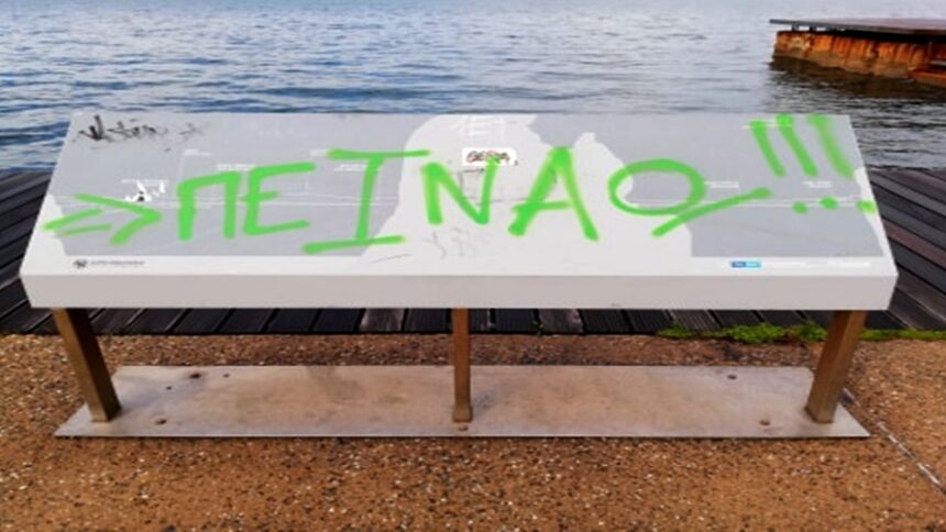 Λίγες ημέρες μετά την τοποθέτησή του ο χάρτης καταστράφηκε. Το παράδοξο είναι πως δεν ήταν μια τυφλή καταστροφή. Δεν καταστράφηκε, δηλαδή, από κάποιο στιγμιαίο θυμό. Από τότε που βανδαλίστηκε μια φορά και δεν επιτελεί το ρόλο για τον οποίο τοποθετήθηκε, δεν ξαναέγινε καμιά άλλη καταστροφική παρέμβαση. Το γεγονός αυτό οδηγεί στη σκέψη ότι ο υπαίτιος της πράξης ήθελε να ακυρώσει τον σκοπό για τον οποίο τοποθετήθηκε ο χάρτης. Και αυτό του έδωσε μια ικανοποίηση. Γιατί; Μήπως την απάντηση διευκολύνει το παρακάτω κείμενο του Ζώρζ Μπατάιγ;