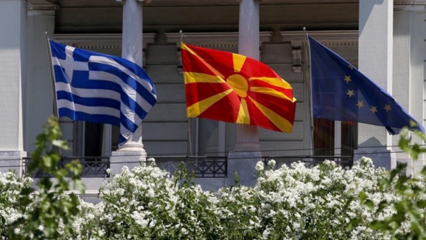 Photo: Σημαίες της Ελλάδας της ΠΓΔΜ και της Ευρωπαϊκής Ενωσης στο ελληνικό υπουργείο Εξωτερικών, κατά την επίσκεψη του Σκοπιανού υπουργού Εξωτερικών Nikola Dimitrov στην Αθήνα. ΑΠΕ-ΜΠΕ, Παντελής Σαίτας