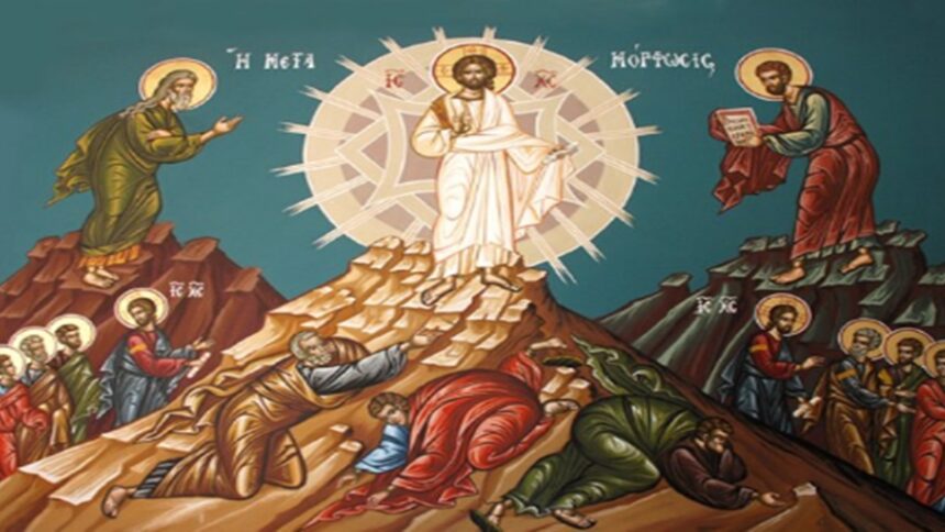 Όταν ξύπνησαν, αντίκρισαν ένα απροσδόκητο και εξαίσιο θέαμα. Το πρόσωπο του Κυρίου άστραφτε σαν τον ήλιο και τα φορέματά του ήταν λευκά σαν το χιόνι. Τον περιστοίχιζαν και συνομιλούσαν μαζί Του δύο άνδρες, ο Μωυσής και ο Ηλίας, δύο από τους προφήτες της Παλαιάς Διαθήκης. Ήταν η πρώτη φορά που έγινε ιδιαίτερα αισθητή από τους ανθρώπους η Θεότητα του Χριστού.