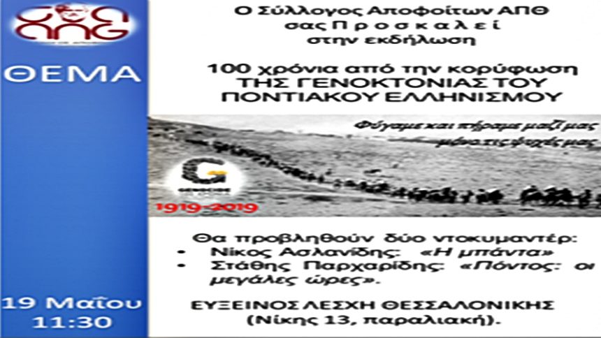 Ο Σύλλογος Αποφοίτων Αριστοτελείου Πανεπιστημίου Θεσσαλονίκης τιμά τη μνήμη των Ελλήνων Ποντίων- και των χριστιανικών λαών της Ανατολής- που υπέστησαν Γενοκτονία.