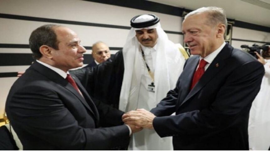 Χρειάσθηκαν εννέα χρόνια από τότε που ανέλαβε τις τύχες της χώρας του ο Αλ Σίσι ανατρέποντας τον πρόεδρο Μόρσι, στενό φίλο του Ερντογάν, και αρχηγό των Αδελφών Μουσουλμάνων, στη διάρκεια των οποίων έχουν ανταλλαγεί βαρύτατοι χαρακτηρισμοί μεταξύ των δυο ηγετών, ώστε να δώσουν τα χέρια στην τελετή έναρξης του Μουντιάλ στο Κατάρ. Και φυσικά κάθε άλλο τυχαίο δεν ήταν ότι στη φωτογραφία που κυκλοφόρησε είναι ο εμίρης του Κατάρ που με απλωμένα χέρια έκανε το «προξενιό».