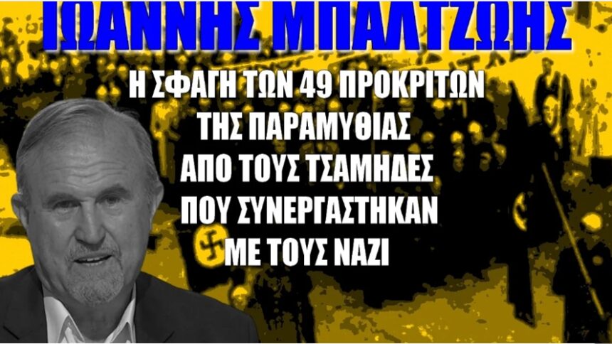 Ο αντιστράτηγος ε.α. Ιωάννης Μπαλτζώης σε εκδήλωση του ΕΛΙΣΜΕ για το Τσάμικο ζήτημα και τη σφαγή των 49 προκρίτων της Παραμυθιάς από τους Τσάμηδες που συνεργάστηκαν με τους ΝΑΖΙ.