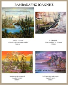 Στις παρουσιάσεις συμπεριλήφθηκαν έργα γλυπτικής, ζωγραφικής, χαρακτικής, αγιογραφίας, ψηφιδωτών, κολάζ, κατασκευές, φωτογραφία. ΣΥΜΜΕΤΕΧΟΥΝ ME ΕΡΓΑ ΤΟΥΣ ΟΙ ΚΑΛΛΙΤΕΧΝΕΣ: