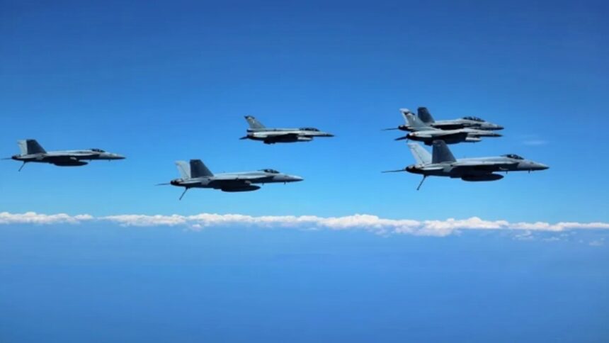 Photo:Ελληνικά F-16 Block 52 Advanced της 336 Μοίρας «Όλυμπος», φτερό με φτερό με τα Αμερικανικά F-18. Πηγή: ΓΕΕΘΑ/ ΓΕΑ