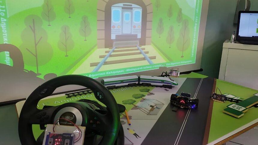 Το ρομποτικό σύστημα «Wedoguard», καθώς και το τηλεκατευθυνόμενο αυτοκίνητο (microbit) το οποίο θα ακινητοποιείται μπροστά στη διάβαση κατά τη διέλευση του τρένου, κατασκευάστηκαν και προγραμματίστηκαν από όλους τους μαθητές της Στ’ τάξης στο πλαίσιο του μαθήματος Πληροφορικής από τις αρχές Ιανουαρίου μέχρι τα μέσα Απριλίου. Στόχος των μαθητών, όπως είπε η μαθήτρια Θαλία Τσιότρα είναι, «να πείσουμε τις αυτοκινητοβιομηχανίες να ενσωματώσουν το ρομποτικό μας σύστημα, στα αυτοκίνητά που κατασκευάζουν και στο μέλλον κάθε αυτοκίνητο, να διαθέτει και από ένα Wedoguard αισθητήρα».