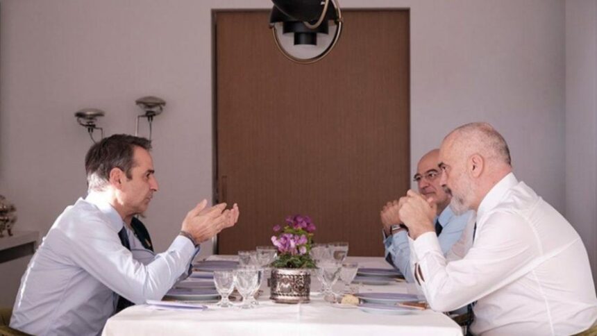 Iκανοποίηση για τη σταθερή βελτίωση των διμερών σχέσεων εξέφρασαν ο Κυριάκος Μητσοτάκης και ο Έντι Ράμα, κατά τη διάρκεια του γεύματος που παρέθεσε νωρίτερα στην οικία του ο πρωθυπουργός προς τιμήν του πρωθυπουργού της Αλβανίας, παρουσία του υπουργού Εξωτερικών Νίκου Δένδια.