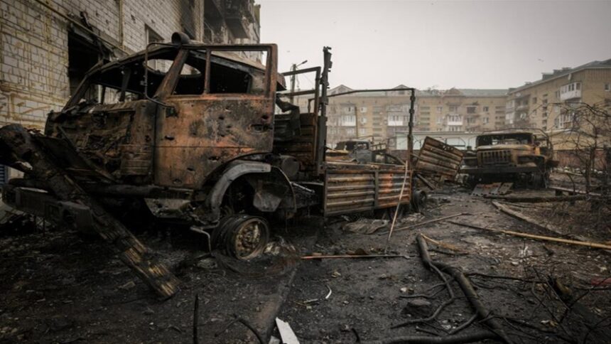 Δημοσιογράφοι του Γαλλικού Πρακτορείου καταμέτρησαν τουλάχιστον 13 κατεστραμμένα ρωσικά τεθωρακισμένα οχήματα γύρω από το χωριό Ντμίτριβκα, πέντε χιλιόμετρα νοτιοδυτικά του Ιρπίν.