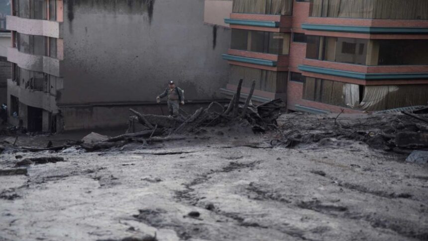 Συνεργεία έρευνας και διάσωσης συνέχιζαν χθες Παρασκευή τις προσπάθειές τους να εντοπίσουν θύματα σε ό,τι απέμεινε από γήπεδο όπου διεξαγόταν αγώνας βόλεϊ, το οποίο κατάπιε γιγάντια κατολίσθηση λάσπης. Εκεί χάθηκαν οι περισσότερες ζωές.