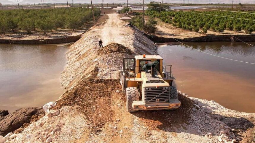 Πλέον στο σημείο γίνονται με ασταμάτητο ρυθμό χωματουργικές εργασίες προκειμένου να μπαζωθεί η συγκεκριμένη κοίτη.