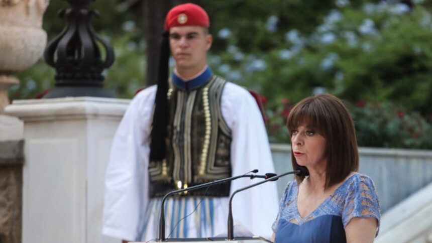 Mήνυμα ενότητας, αναζήτησης συναινέσεων και συγκλίσεων για το καλό του τόπου, εν μέσω σκληρών διλημμάτων και δύσκολων επιλογών σε ένα αβέβαιο και απειλητικό διεθνές περιβάλλον, έστειλε η πρόεδρος της Δημοκρατίας Κατερίνα Σακελλαροπούλου κατά την ομιλία της στη δεξίωση για την 48η επέτειο της αποκατάστασης της Δημοκρατίας στον κήπο του Προεδρικού Μεγάρου.