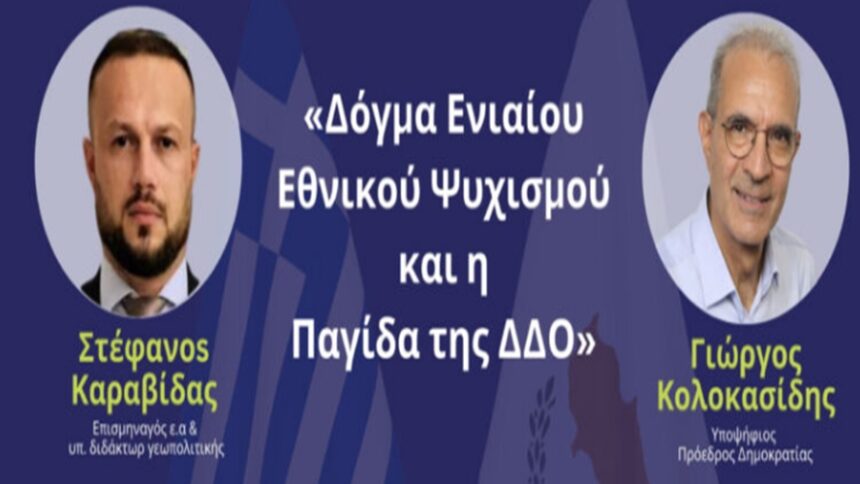 Με χρήσιμα συμπεράσματα ολοκληρώθηκε η εκδήλωση «Το δόγμα του ενιαίου εθνικού ψυχισμού και η παγίδα της ΔΔΟ» που πραγματοποίησε το Εκλογικό Επιτελείο του υπ. Προέδρου της Δημοκρατίας Γιώργου Κολοκασίδη στη Λεμεσό. Το θέμα της εκδήλωσης παρουσίασαν ο επισμηναγός ε.α. και υποψήφιος διδάκτωρ Γεωπολιτικής Στέφανος Καραβίδας και ο υποψήφιος Πρόεδρος Γιώργος Κολοκασίδης, ενώ ακολούθησε εποικοδομητικός διάλογος με τους παρευρισκόμενους.