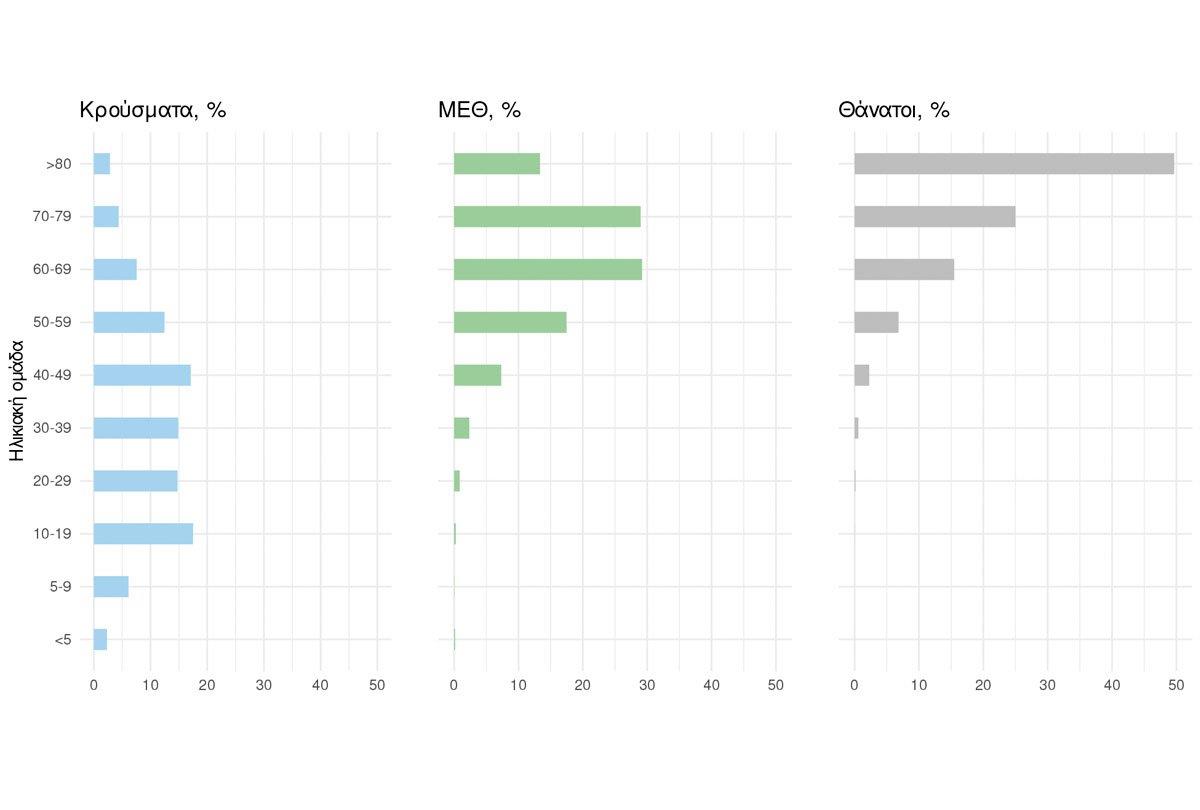 - Η διάμεση ηλικία των κρουσμάτων είναι 36 έτη (εύρος 0.2 έως 112 έτη), ενώ η διάμεση ηλικία των θανόντων είναι 79 έτη (εύρος 0.2 έως 106 έτη).