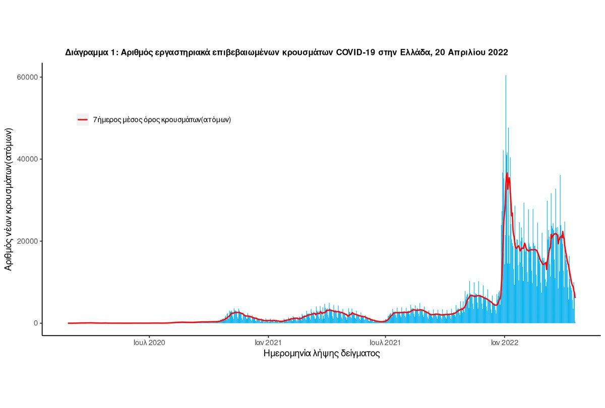 Ο ΕΟΔΥ ανακοίνωσε 7.365 νέα κρούσματα σήμερα, Μεγάλη Τετάρτη 20 Απριλίου, καθώς και 64 θανάτους το τελευταίο 24ωρο σύμφωνα με την τελευταία ενημέρωση για τον κορονοϊό στην Ελλάδα. Επίσης, στα νοσοκομεία νοσηλεύονται 291 διασωληνωμένοι ασθενείς με Covid.
